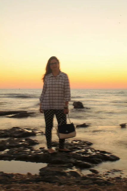אחר כך החלפתי לנעל סירה שטוחה , הוצאתי את החולצה מהמכנס והתקבל מראה נוח וקולי שהשתלב נפלא על רקע