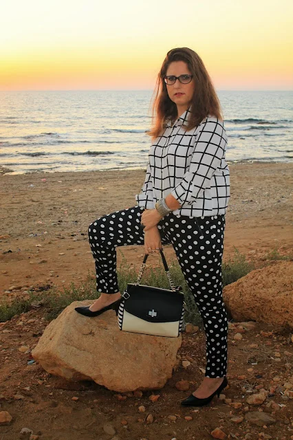 אני בחיים לא הייתי חושבת על שילוב כזה -חולצה שחור ולבן ב- הדפס משובץ -תשבצי.