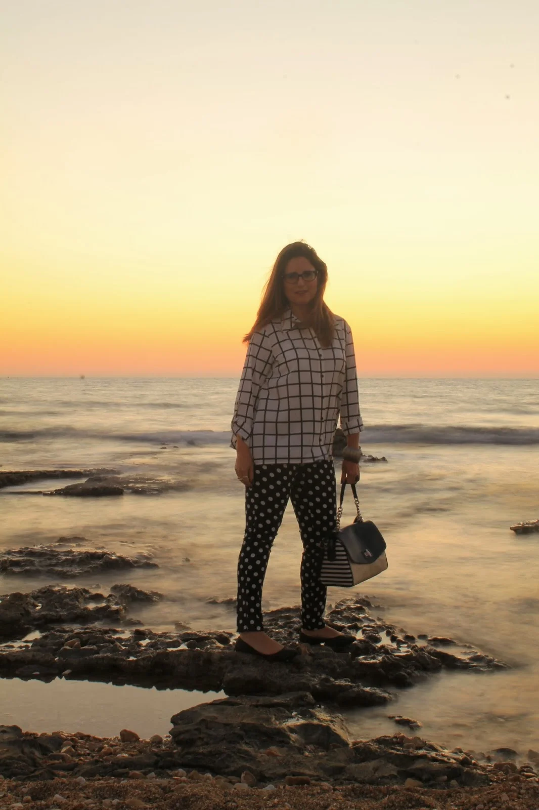 אחר כך החלפתי לנעל סירה שטוחה , הוצאתי את החולצה מהמכנס והתקבל מראה נוח וקולי שהשתלב נפלא על רקע