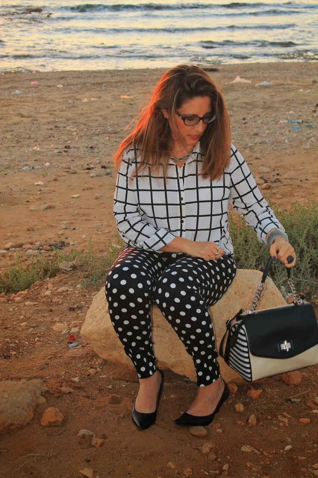 אני בחיים לא הייתי חושבת על שילוב כזה -חולצה שחור ולבן ב- הדפס משובץ -תשבצי.