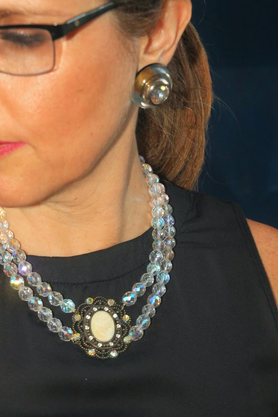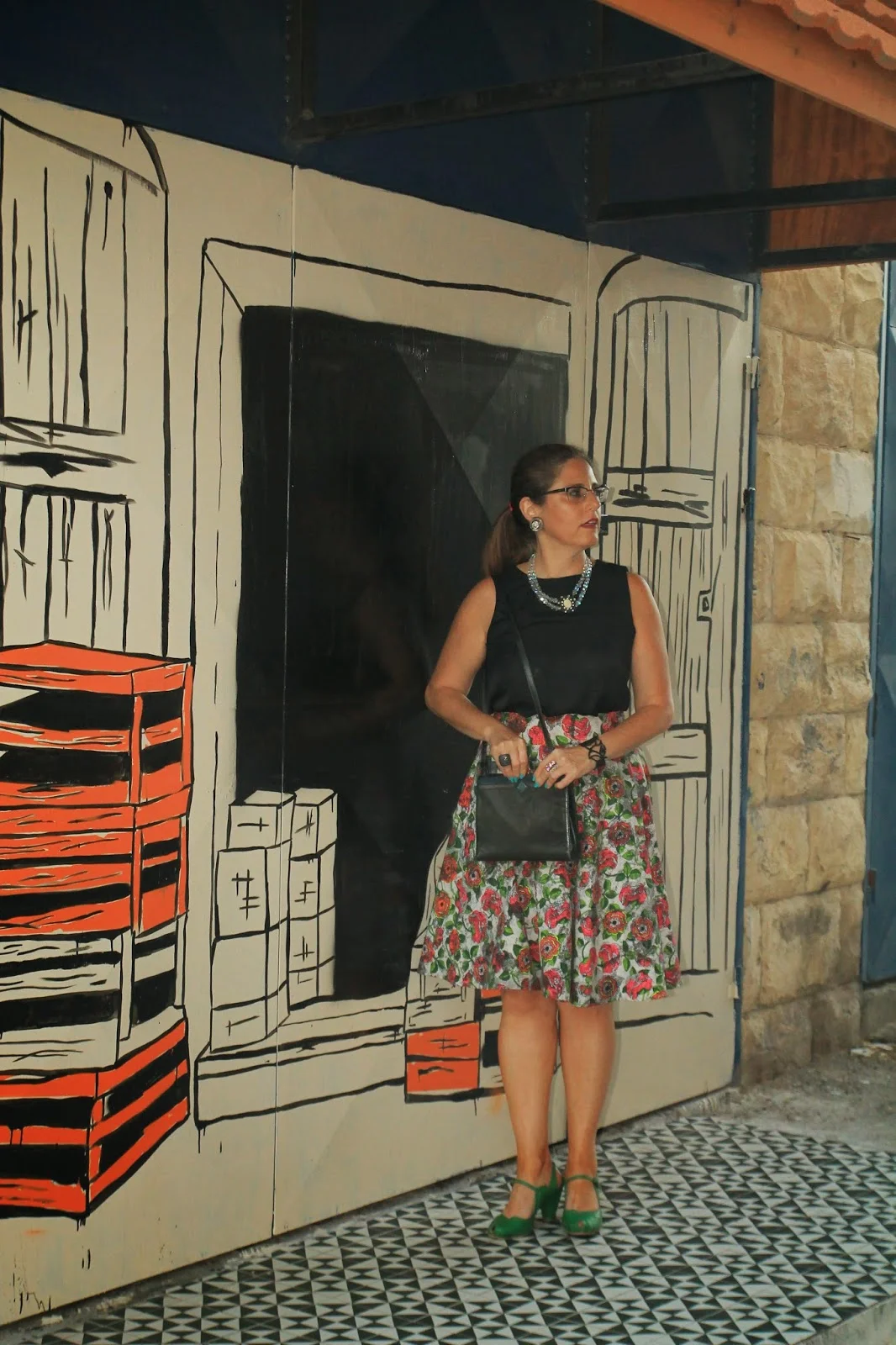 ליצירת המראה הוינטאג'י הוספתי, שרשרת ,עגילים צמודים ,נעלים ותיק שמזכירים את התקופה וגם שיער אסוף מה שאני בדרך כלל לא עושה , תסרוקת היתה בהחלט מוסיפה. – בפעם הבאה.