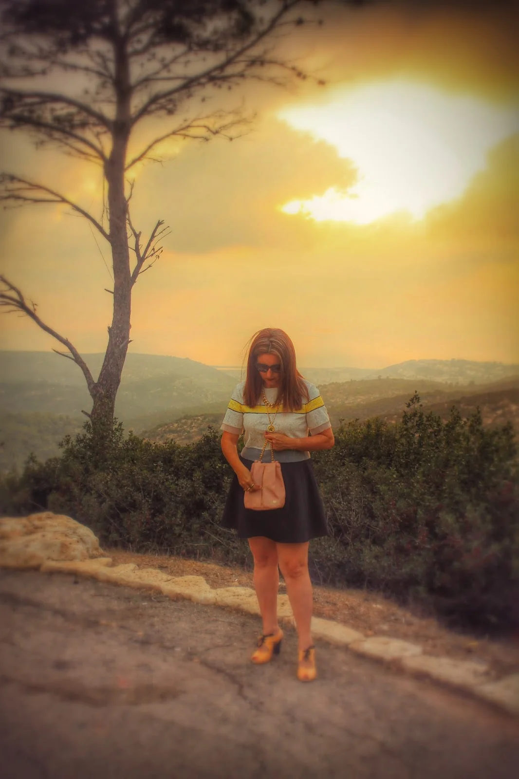 בחרתי  בנעליים צהובות  בגוון  בהיר (ראיתן אותן כאן) שאני מאוד אוהבת  והפעם גם בחולצה יש נגיעות של צהוב.