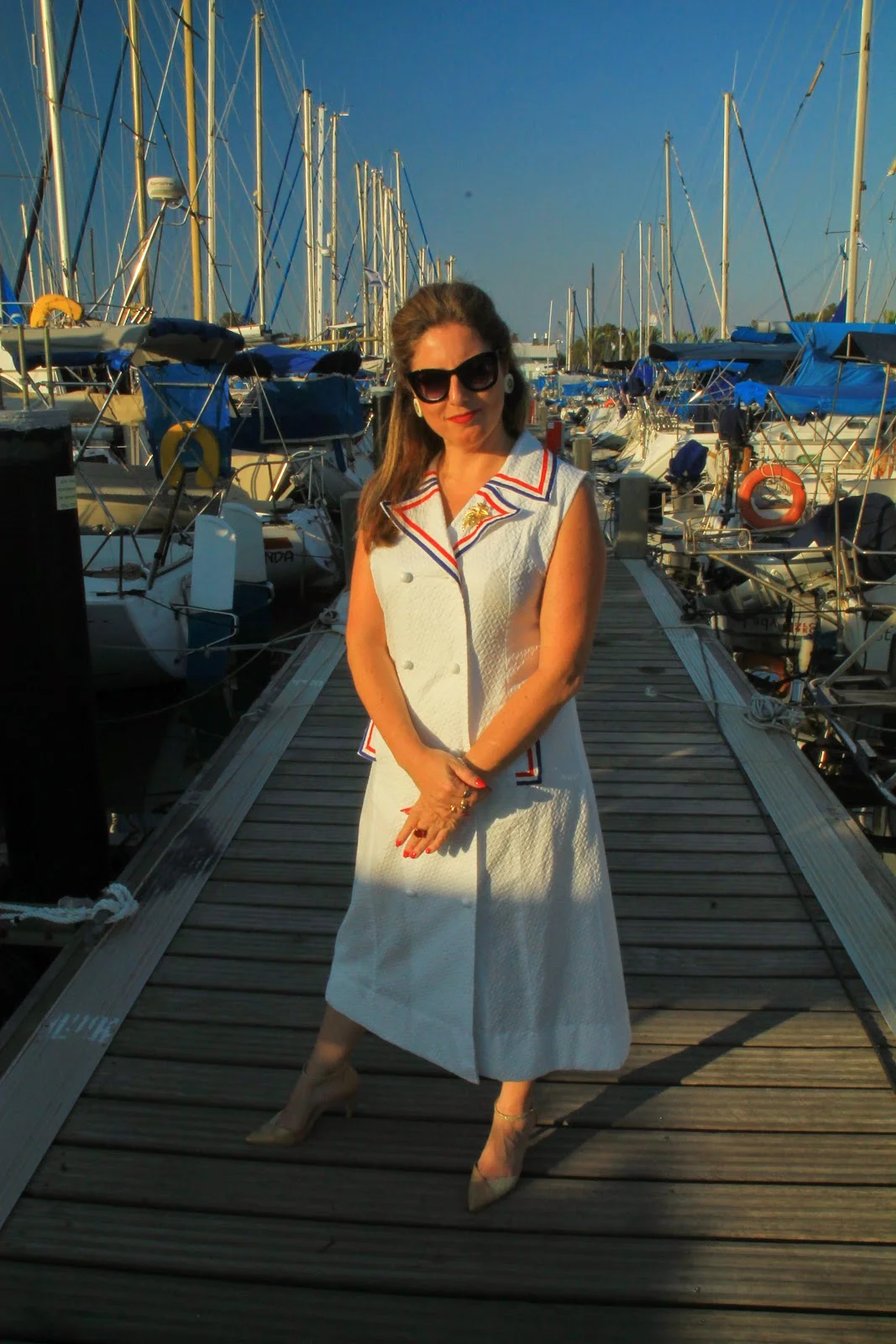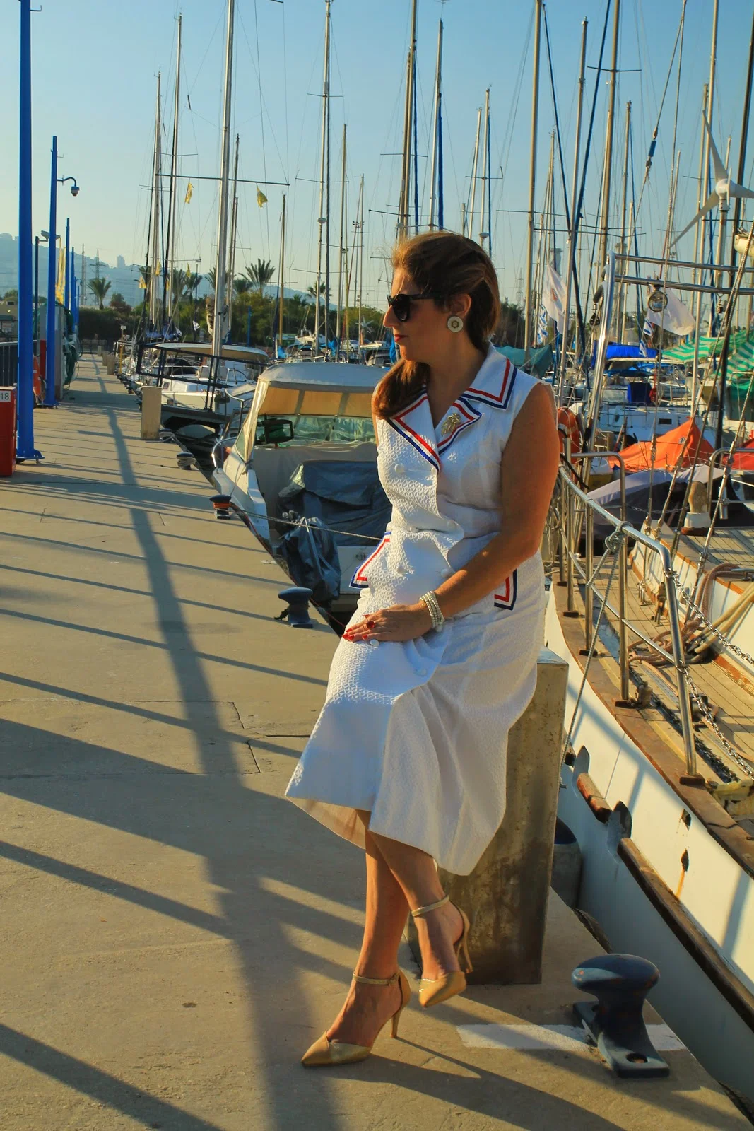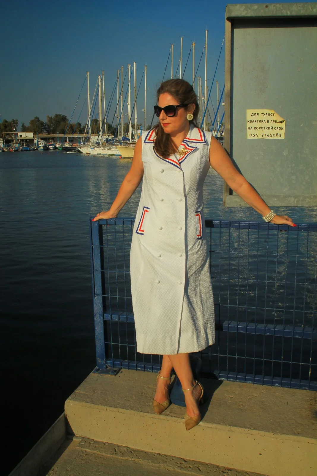 מכייון  שהשמלה הזו כל כך מזכירה את בגדי רב חובל בלבן כחול ואדום היה מתבקש לוקיישן שקשור בים ואין מוצלח יותר ממעגן הדייג בחיפה.
