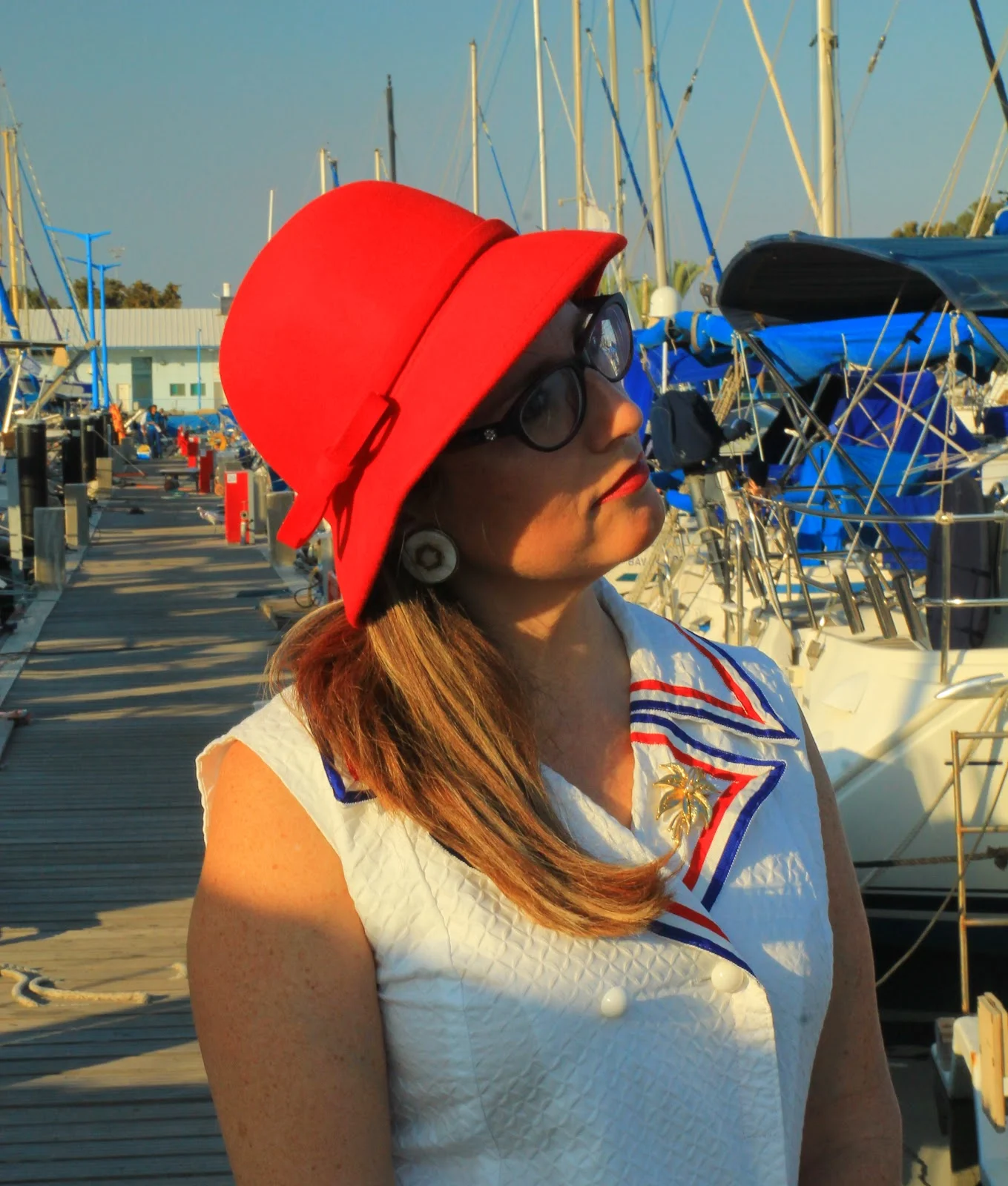 הוספתי כמה אקססוריז שמתאימים לרוח התקופה של שנות ה50, עגילים צמודים לאוזן שהן של אמי ממש משנות ה50, סיכת דש וכובע.