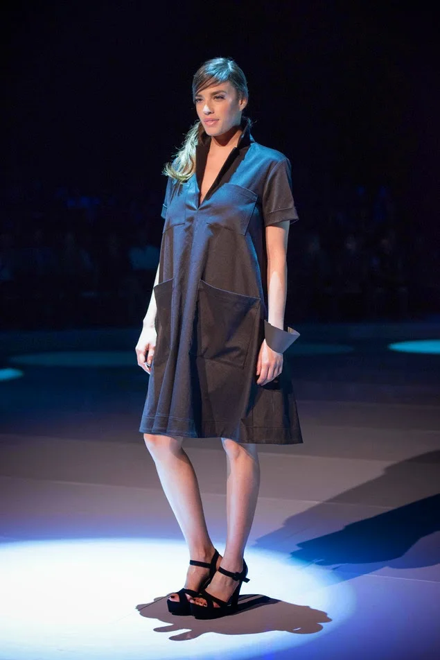 את התצוגה פתחה אור גרוסמן הפרזנטורית ההריונית בטוטאל לוק שחור .