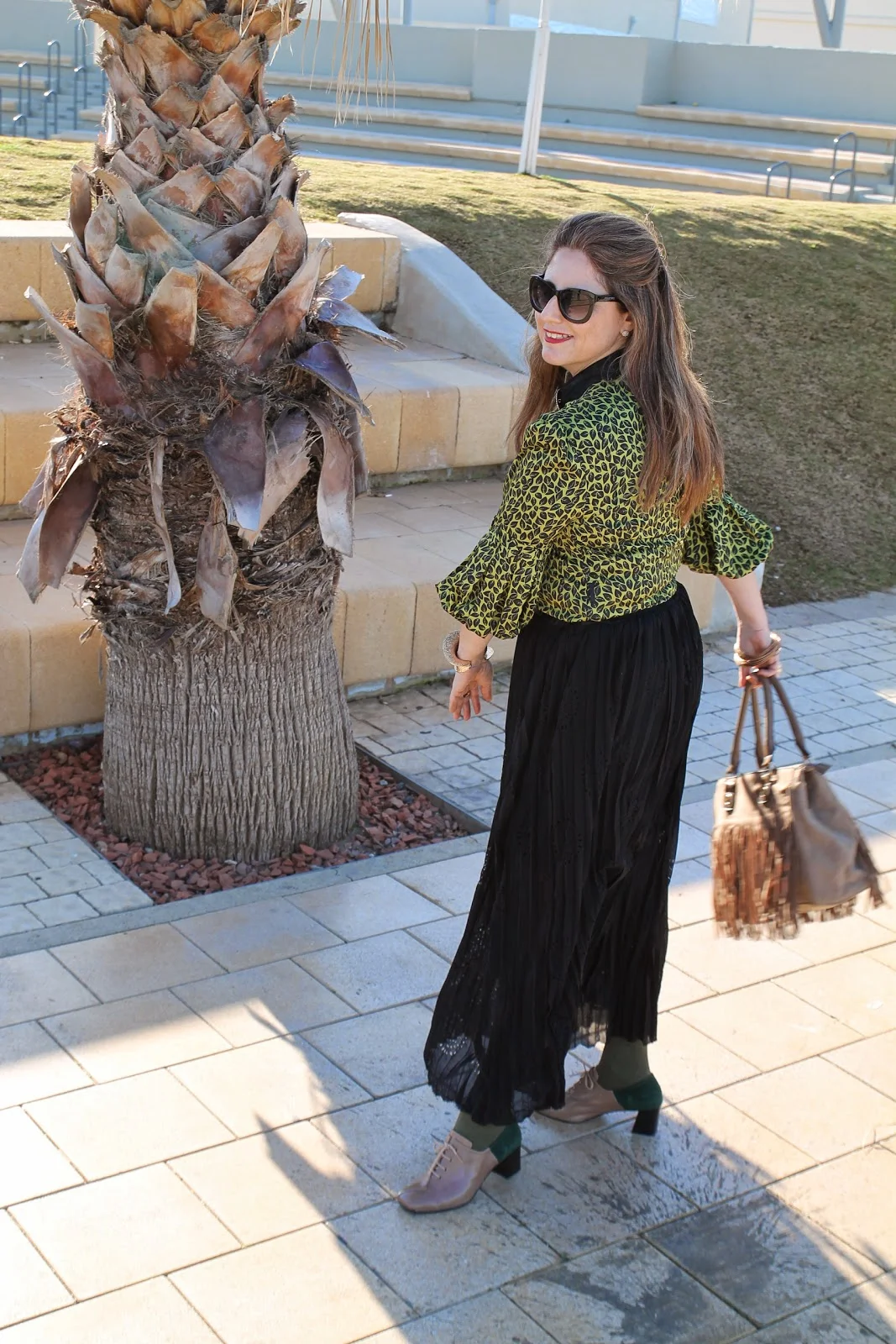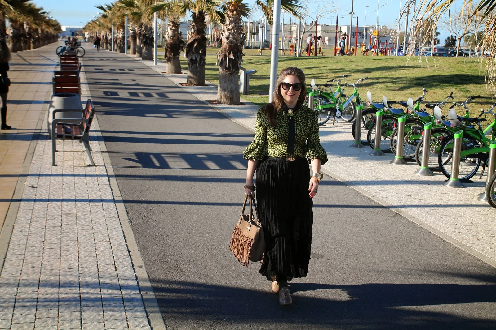 לפריט בעל דומיננטיות כזו אין צורך בעוד משהוא בולט,לכן התאמתי חצאית מקסי קלאסית.
