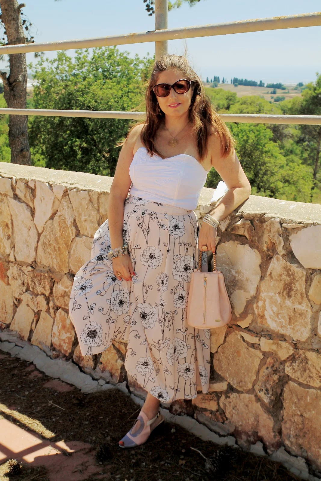 החצאית שלי מבד נופל ורך ובאורך מידי לכן הרגשתי בנוח לשים מחוך סטרפלס צמוד ועדיין להראות עדינה ומכובדת ,קצת בסגנון רטרו.