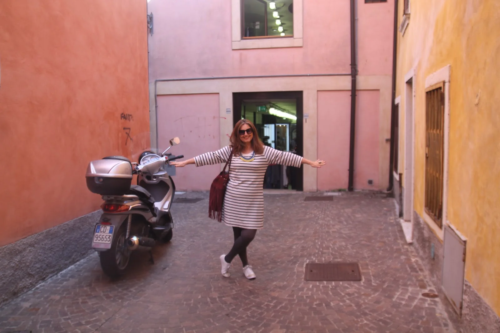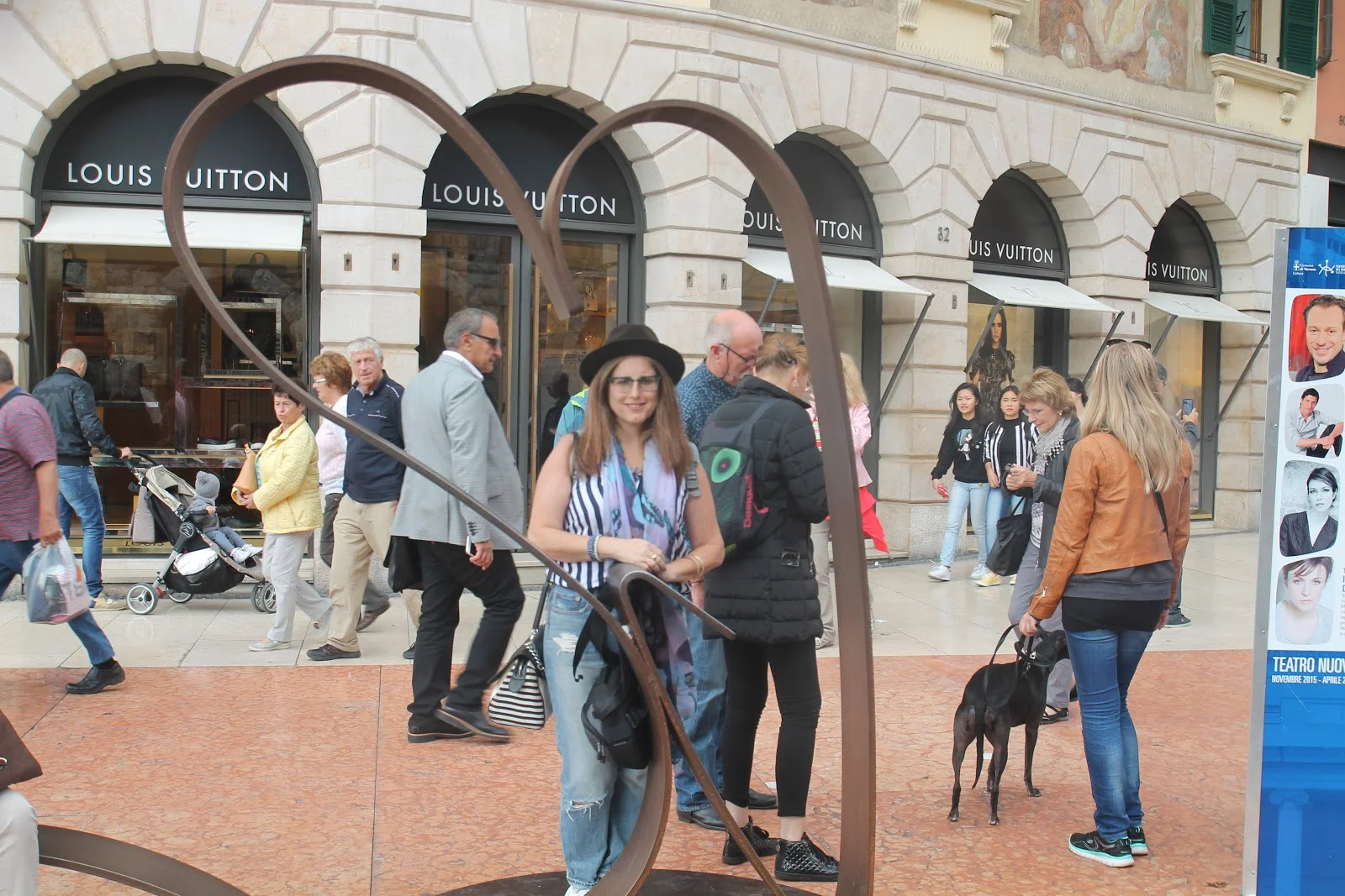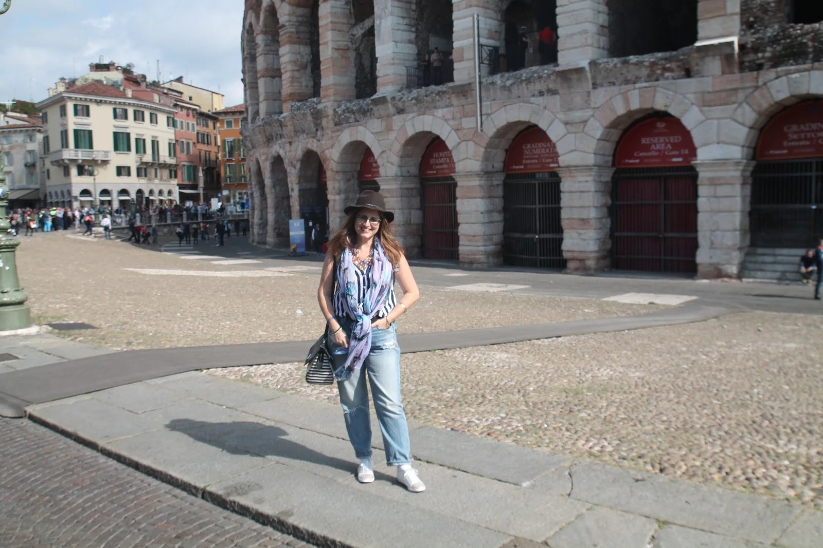 התחלו בורונה עיר שידועה כעיר רומנטית אודות לסיפור של רומיאו ויוליה ,לטיסה בחרתי הג'ינס נוח וסניקרס ולשדרוג כמו שאני תמיד אומרת אקססוריז-שרשרת עם אמירה וכובע. (שלצערי אבד בטיול..סיבה מצוינת לאחד חדש)