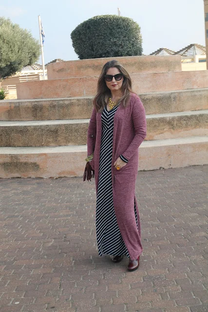 כל הלוק שלי היום של רשת העין השלישית , יש שם מבחר גדול מאוד של שמלות ואני בחרתי בפסים אלכסוניים שהם מצוינים לטשטוש של הבטן (כבר כתבתי על זה )וכמובן העליונית הארוכה !