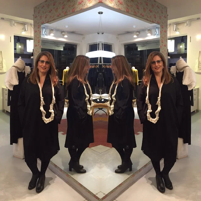יש בחנות גם הרבה אקססוריז מיוחדים, שרשראות, תיקים, צעיפים…