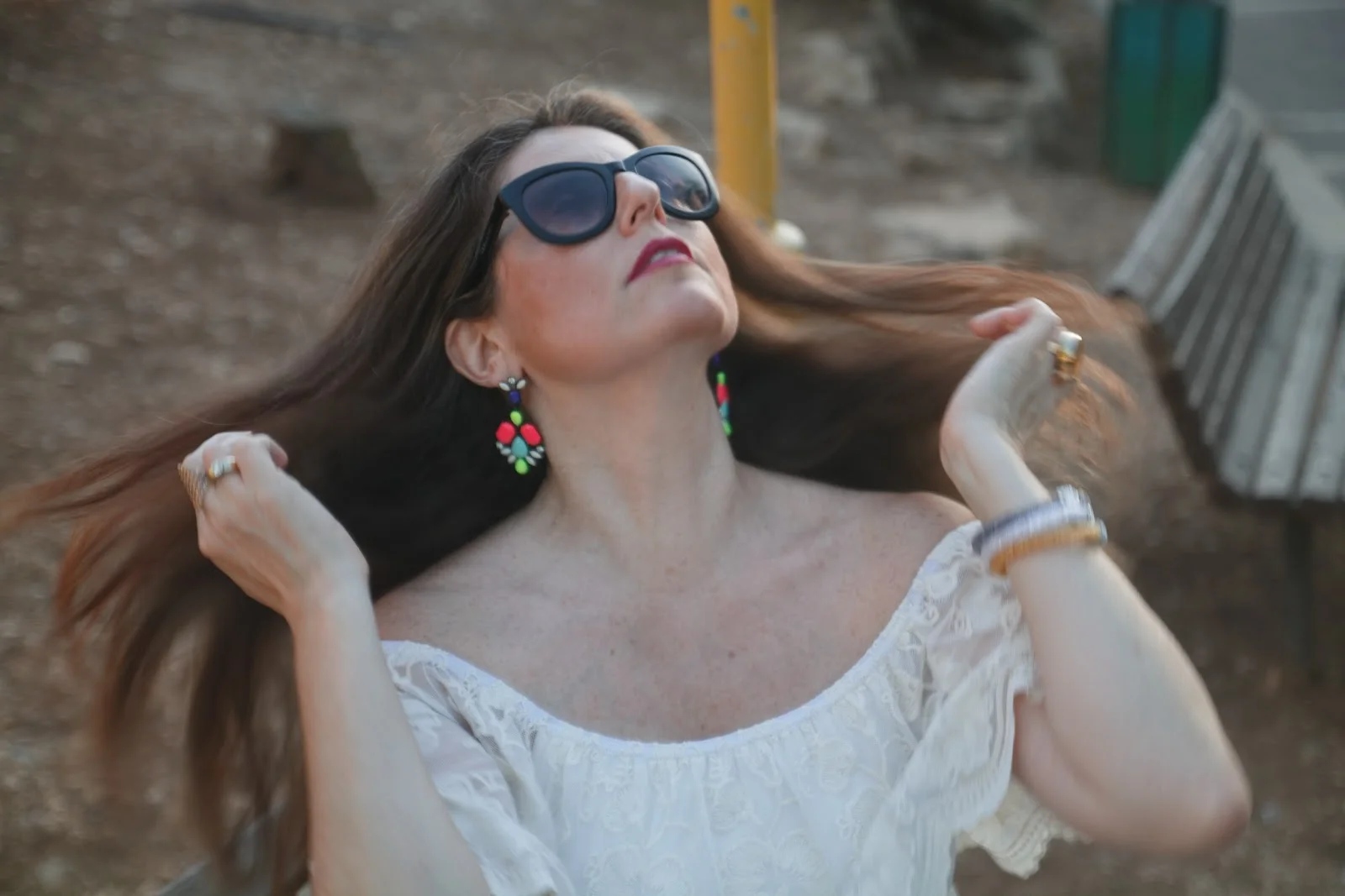 לכן יש לי כחול בנעלים, צהוב בתיק ובחגורה ועגילים בשלל צבעים.