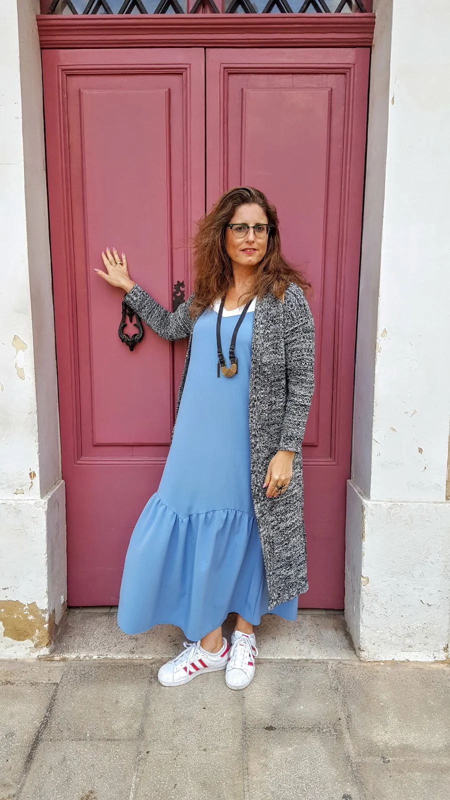 הלוק של היום- תענוג עם שמלה רחבה ונוחה – לשדרוג הוספתי טי שרט לבנה כי היה קר ופתאום אמצתי את הטרנד האחרון בלי כוונה ,שרשרת מיוחדת ועליונית סריג ארוכה מהחורף האחרון שאופנתית גם העונה ..