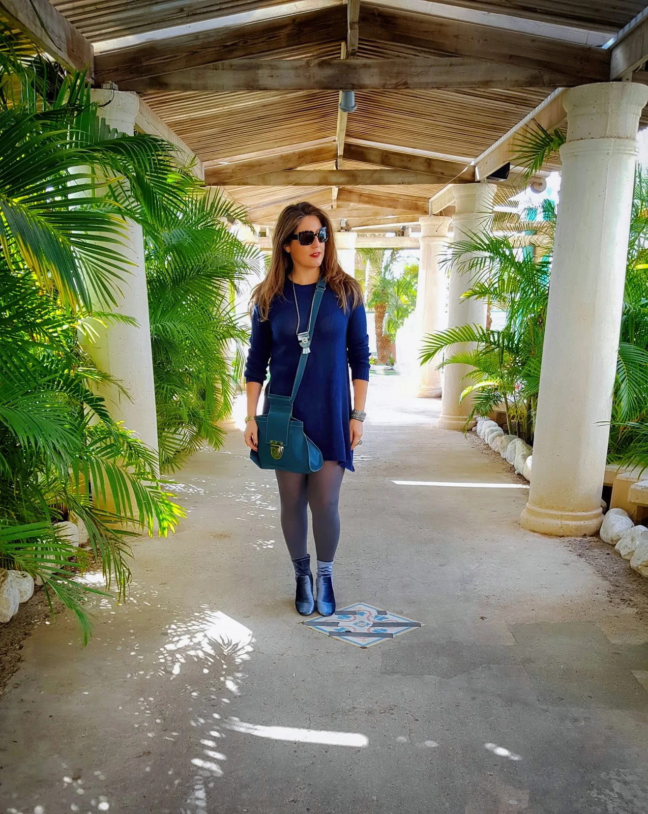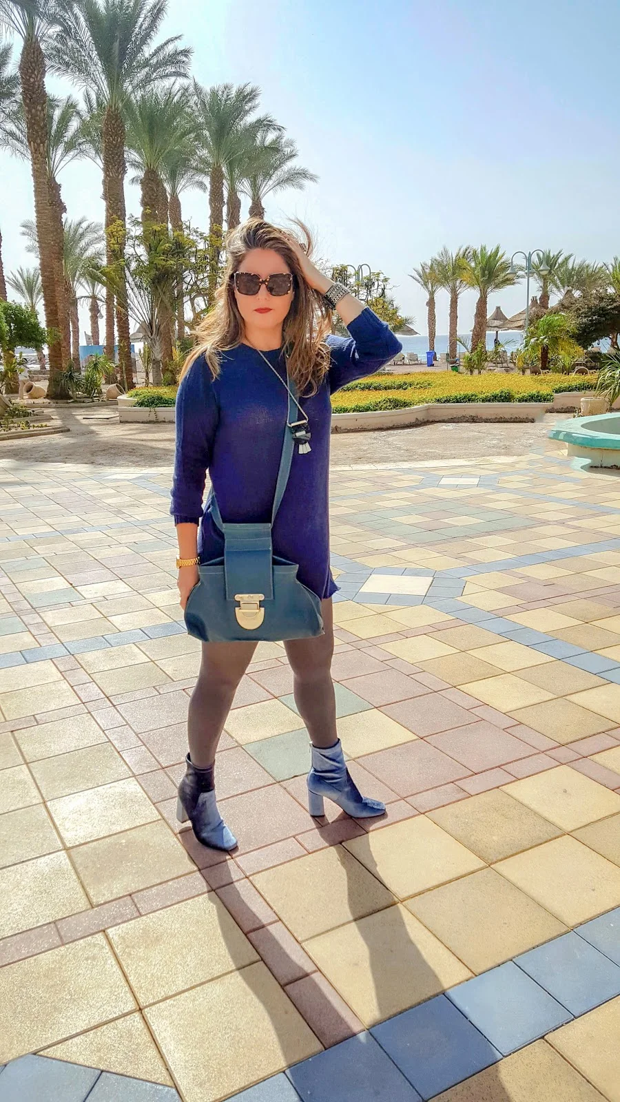 כמה תמונות שצולמו במלון עם אאוטפיט שיקי, סריג, גרביון ומגפוני קטיפה, כמובן עם התיק והשרשת.
