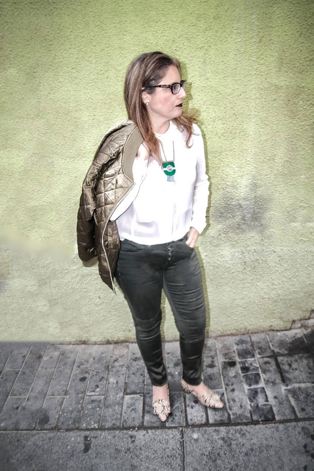 אני בחרתי בשרשרת משולבת בירוק-אפור ובחולצה לבנה כדי שתראו בבירור את היופי של השרשרת וכמה שהיא מוסיפה ללוק כולו .