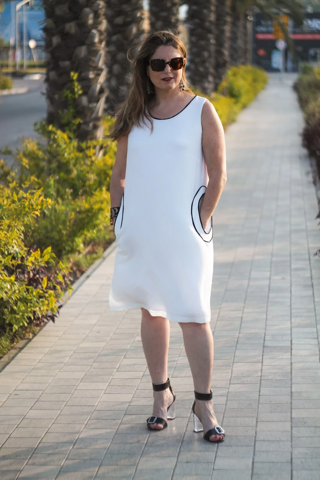 השמלה הלבנה מיוחדת מאוד בכיסים שלה, נהדרת ליום יום , ואפשר לשלב בהמון צבעים, כל צבע של נעליים יהיה מקסים פה. הכי כיף לשחק עם שחור ולבן.