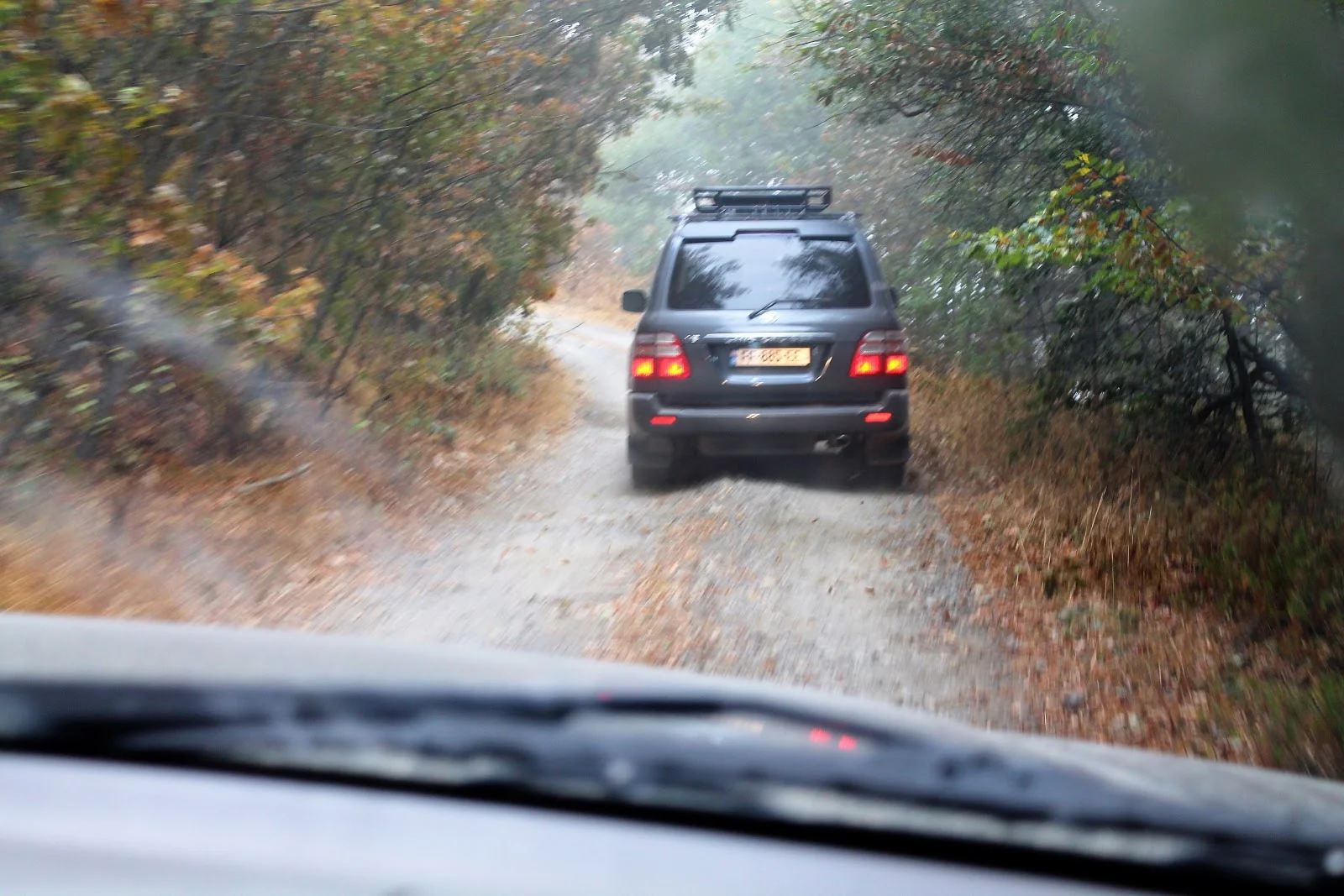 מכיוון שאנחנו נסענו עם ג'יפים, אז עשינו גם קצת רכיבת  שטח , נכנסנו למסלול בתוך יער יפיפה ועלינו לפסגה , חבל שמזג האוויר לא היה לצידנו, היה ערפל מוחלט שאפילו שהפסל העצום של החייל הגאורגי שעמד ממלונו בקושי נראה.