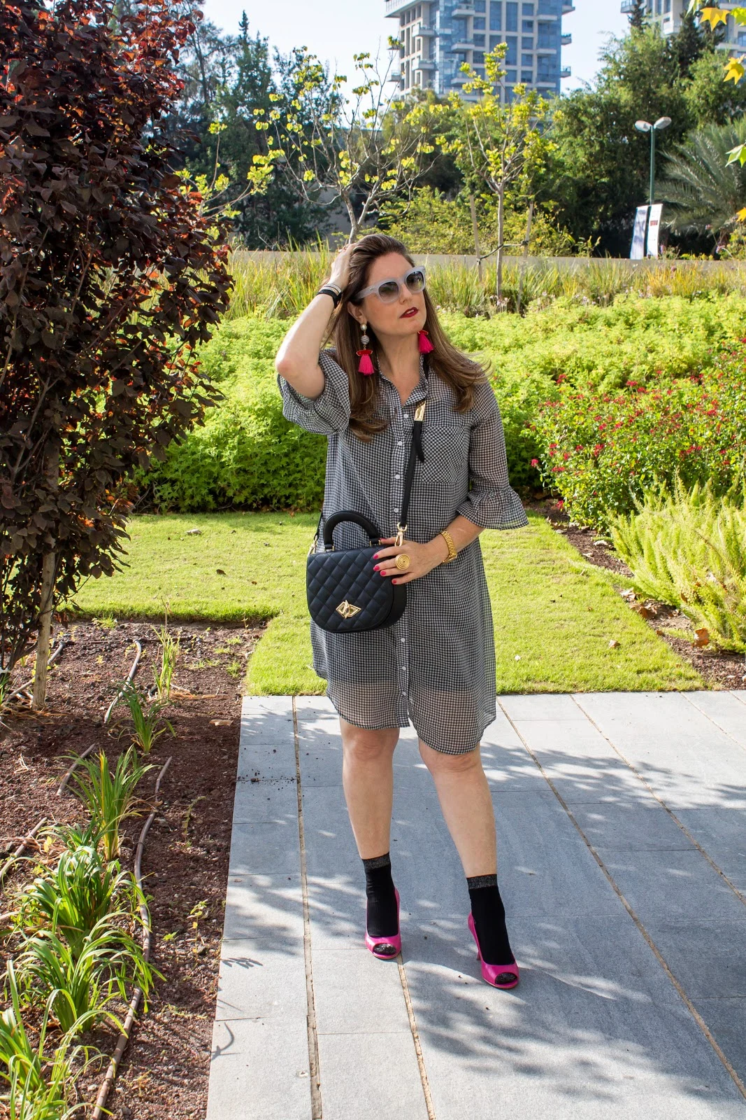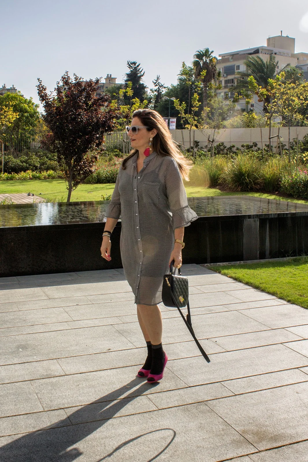 השמלה מבד עם הדפס של משבצות (gingham) שמאוד טרנדי כבר זמן מה.