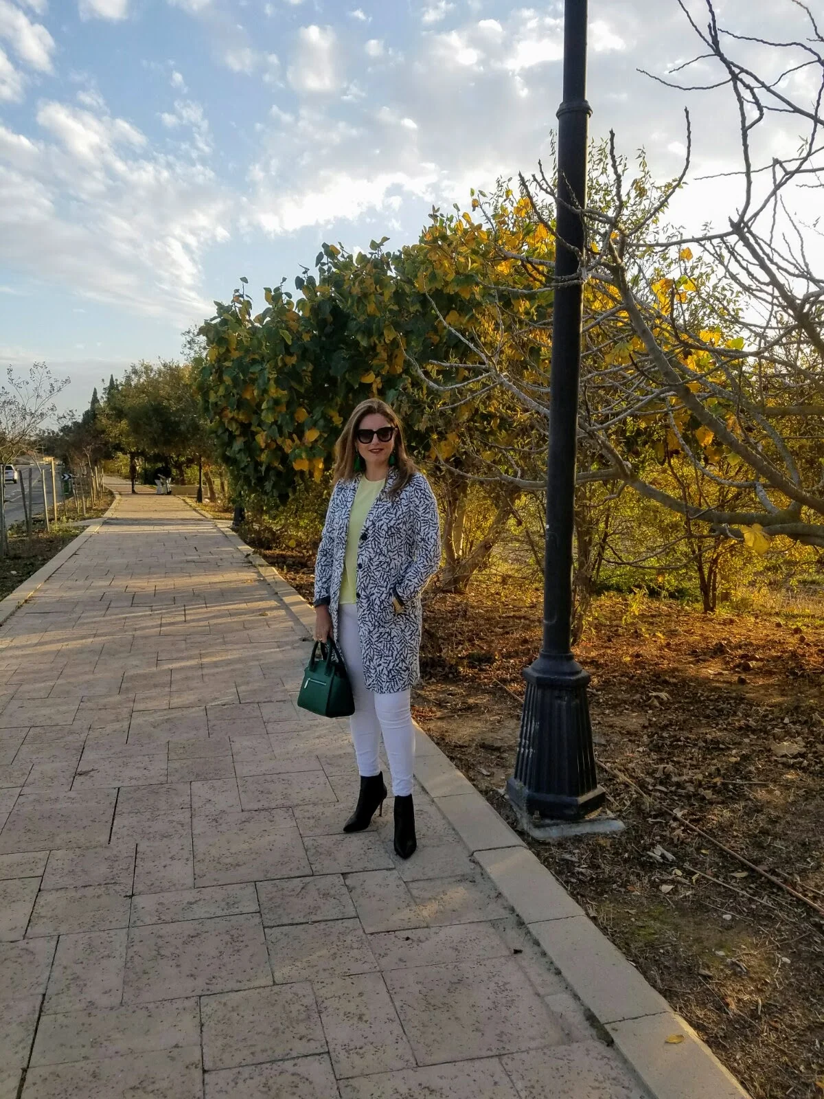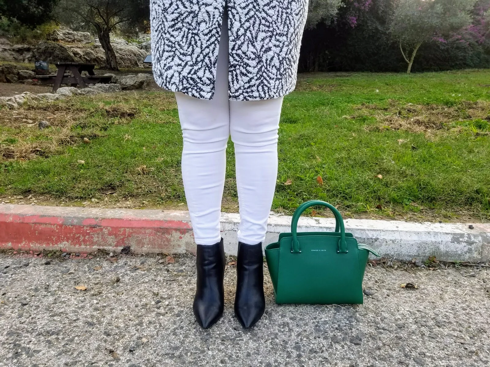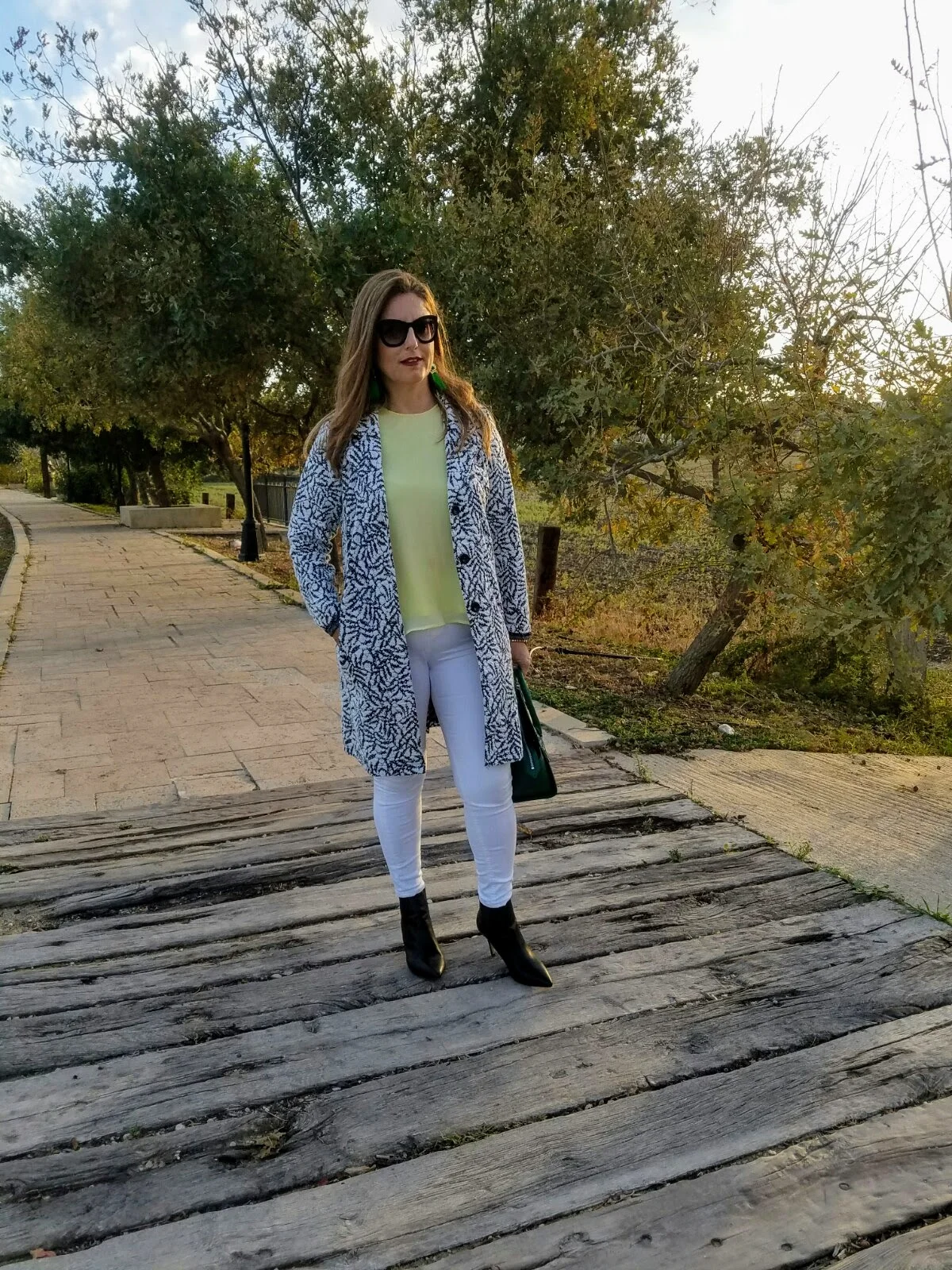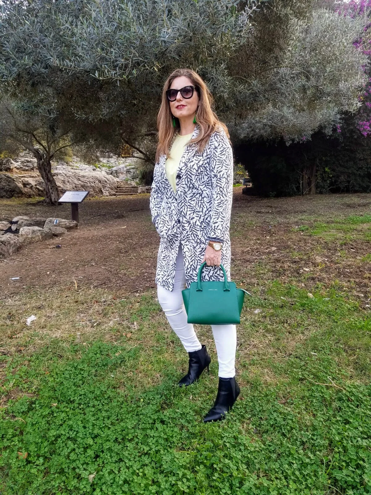 אני בחרתי בשחור לבן ולכן היתה לי אפשרות מצוינת לשחק עם צבעים בפרטים האחרים שאותם בחרתי בירוק וצהוב, צהוב בחולצה שילבתי עם ירוק באקססוריז בעגילים ובתיק.