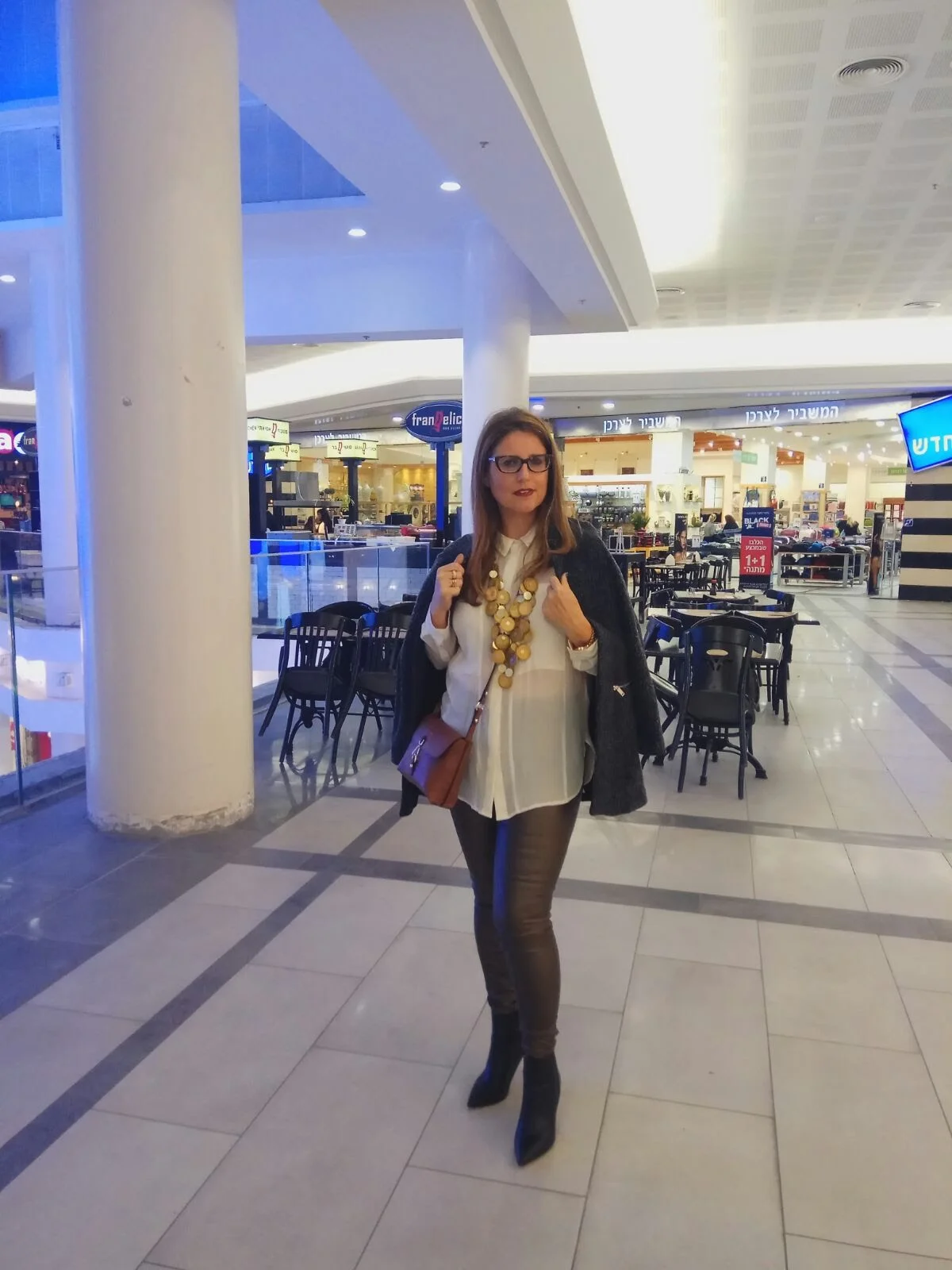 אני בחרתי מהקולקציה גם מכנסיים בגזרת סקיני דמוי עור בצבע ברונזה משגע.