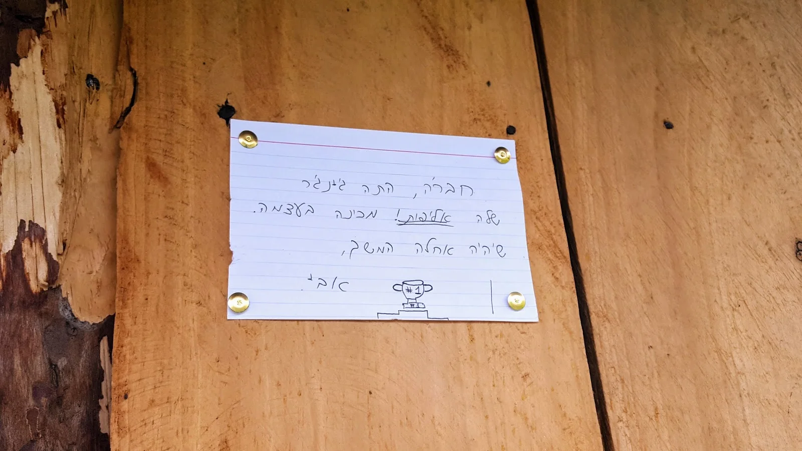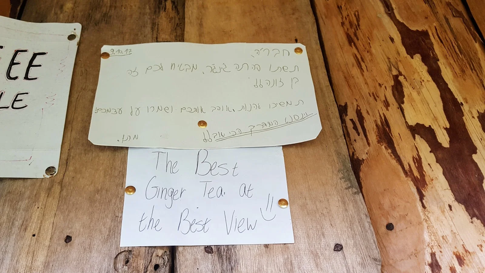 במהלך כל היום שטיילנו היה כל פעם מטר של גשם ,כל פעם שהתחיל הגשם נחנו באיזו תחנה,אחת מהן היה "הקיוסק" הקטן -בקתת עץ שמתברר שהרבה ישראלים ביקרו בה וכיאה לישראלים דאגו גם להשאיר מזכרת . שרון אומר שבאמת התה ג'ינג'ר מעולה.