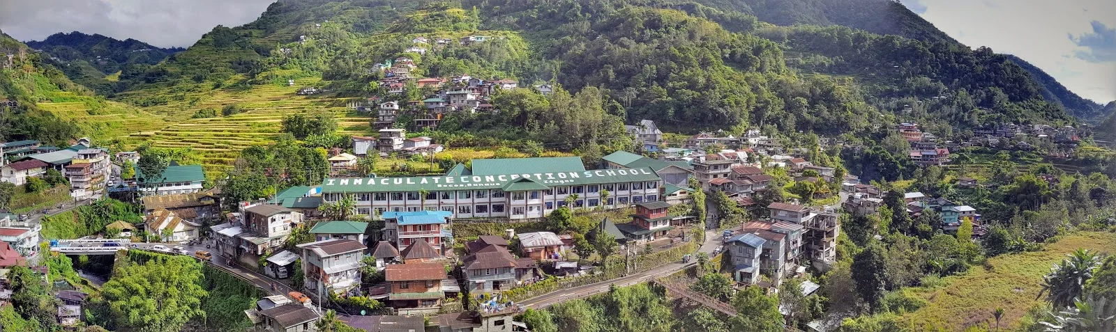 העיירה ממוקמת בצפון בלוזון, שוכנת בלב ליבו של איזור טרסות האורז שנחשב לאיזור הטבע היפה ביותר בפיליפינים. את העיירה מקיפים 13 כפרים של בני שבט האיפוגאו (Ifugao) בני האיפוגאו הם אלו שמגדלים ומתחזקים את טרסות האורז בנות ה- 2,000 שנה ויותר שהפכו לסימן ההיכר של האיזור.יותר מ-2,000 שנה מעבדים שבטי ההרים את טרסות האורז במורדות ההרים, בגבהים שבין 700 ל-1.500 מטר. הטרסות, שהוכרו כאתר מורשת עולמית של אונסק"ו.