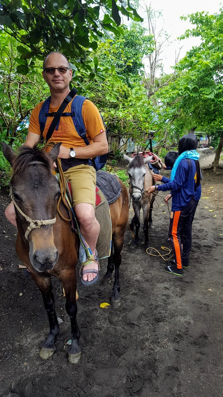 אל ההר מגיעים ברכיבה על סוסים , אפשר גם ללכת ברגל, זה לא מסלול ארוך במיוחד וגם לא קשה, עם הסוסים זו בהחלט חוויה יותר נעימה, במיוחד לאור הלחות והבוץ שהיה בגלל הגשם, לכל סוס של מדריך צמוד ובעצם זה אתה המדריך והסוס…