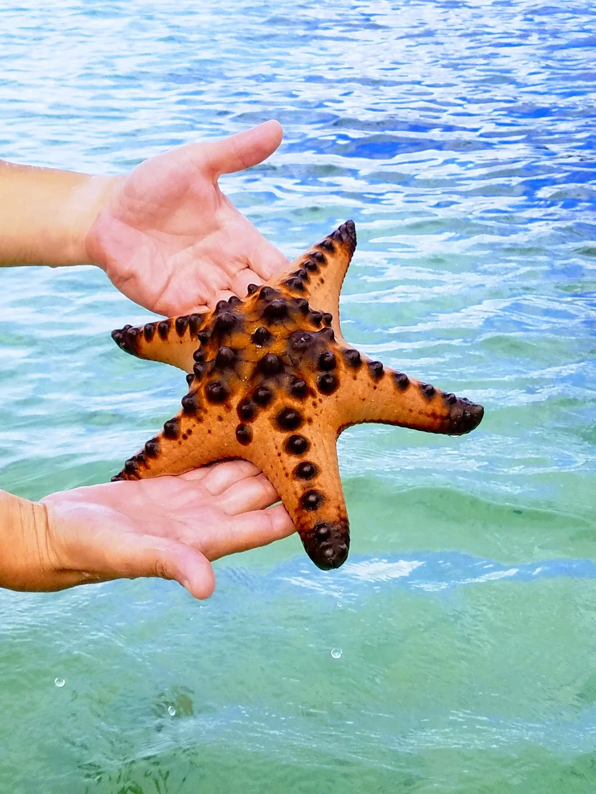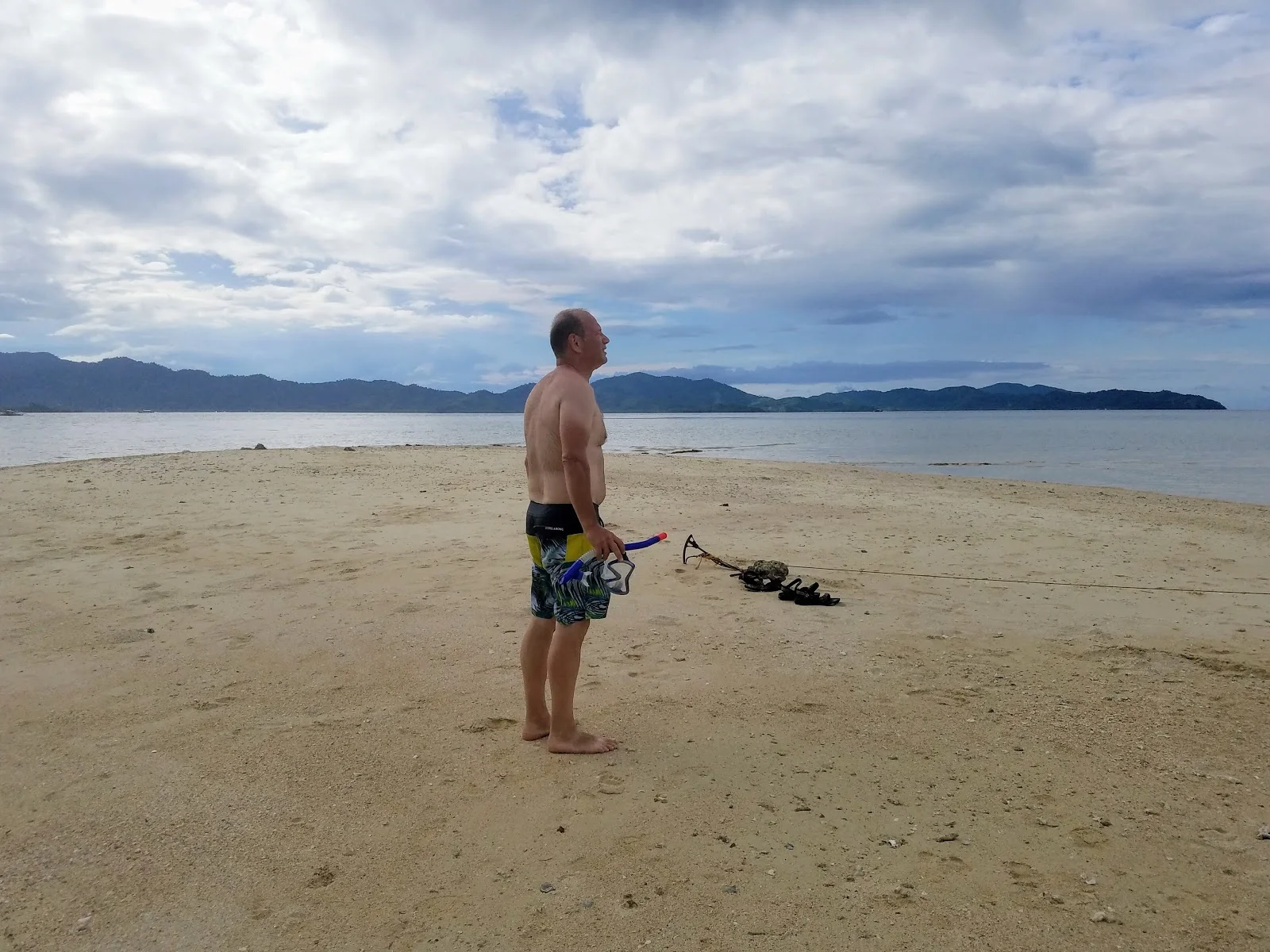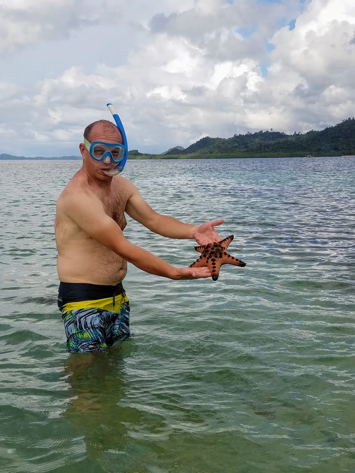 משם המשכנו לאי, פיסת חול ממש באמצע היום, שכחתי איך הם קוראים למקום, הגיעו לשם הרבה קבוצות של צעירים, אפשר היה לצלול תראו מה שרון מצא.