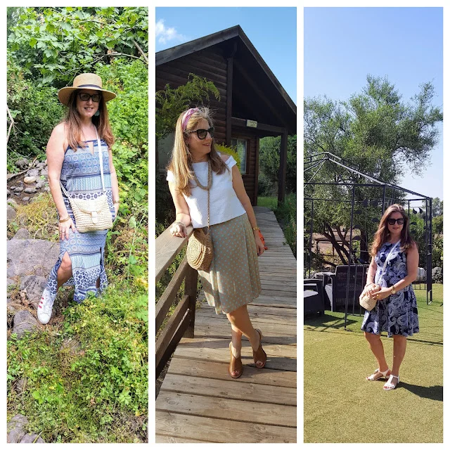 עם כובע קש, תיק קש ושמלות נעימות ונוחות.