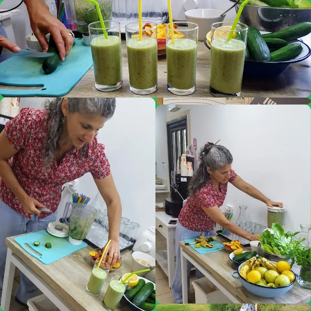 בבוקר דינה דאגה לנו לשייקים טריים וטעימים שטחנה לנו והראתה לנו כמה שזה פשוט ליישום וכמה שניתן לגוון בטעמים בקלות – אני אהבתי מאוד.
