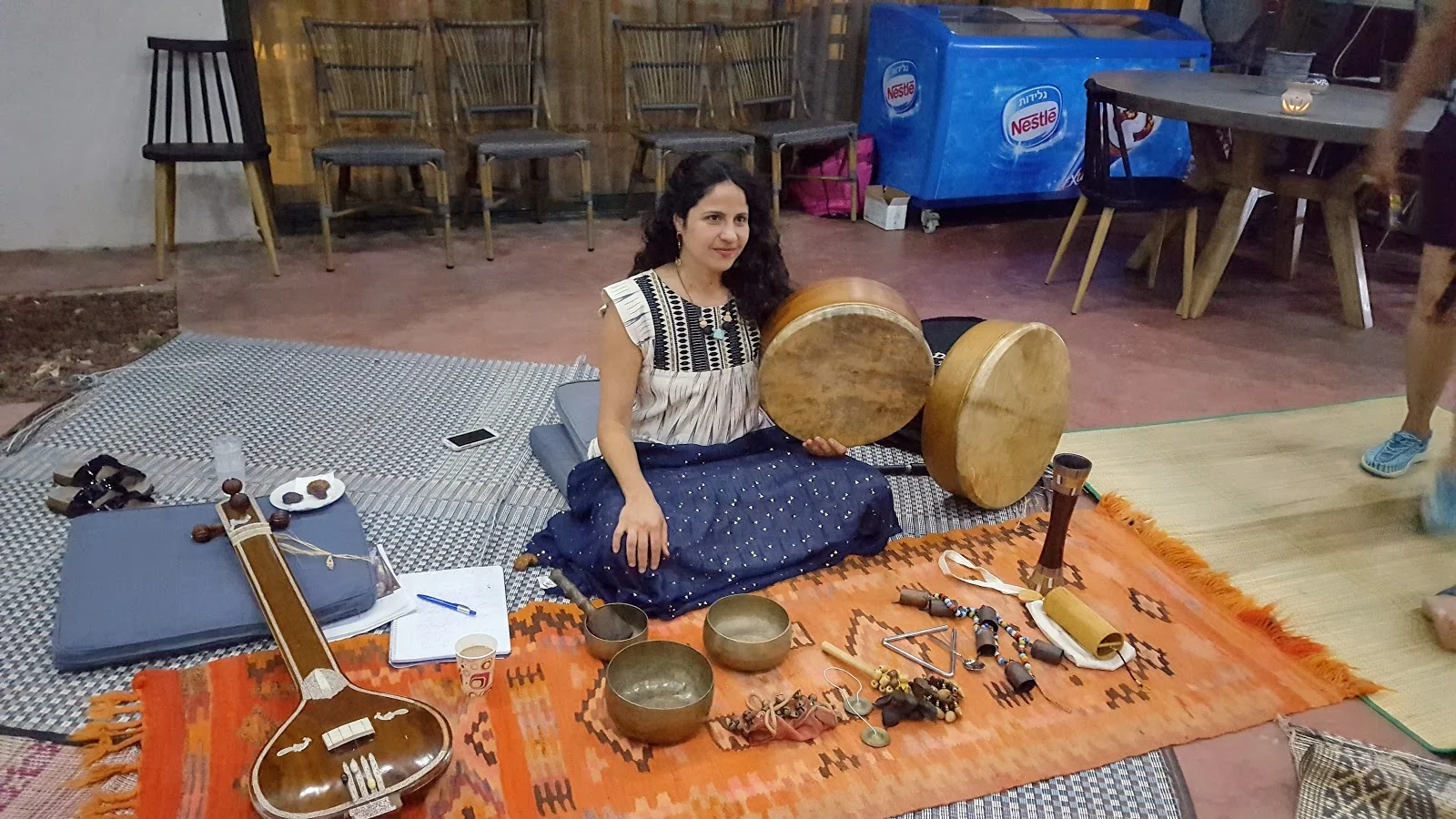 בערב נהנו מסדנת מוזיקה וצלילים מרפאים עם קארן לוגסי .