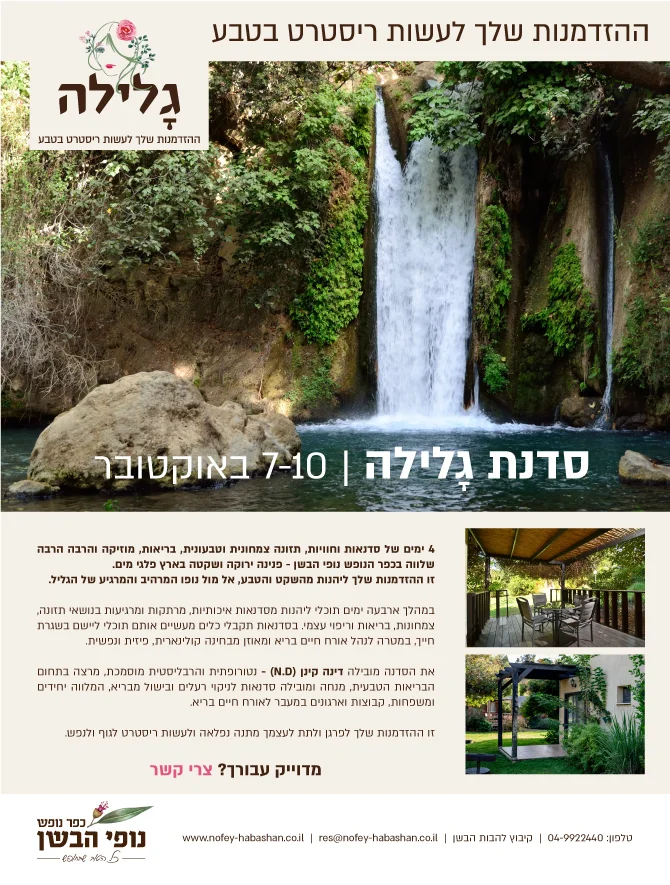 עכשיו ל"סדנת גלילה" ריסטרט בטבע – את הסדנה בנתה ומובילה דינה קינן (N.D) נטורופתית מוסמכת,
