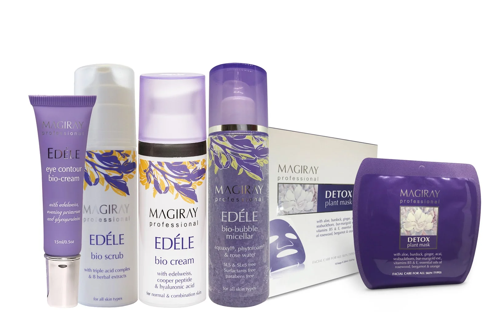 הסדרה שהכרנו היא סדרת EDÉLE לטיפול דטוקס. הייחודיות של הסדרה היא בכך שהיא מבוססת על סגולות צמחי מרפא ואנטיאוקסידנטים חזקים שנועדו להבטיח דטוקס, ולסייע בטיפול בפיגמנטציה, הזדקנות מוקדמת ומחלות עור שונות כמו אקנה.