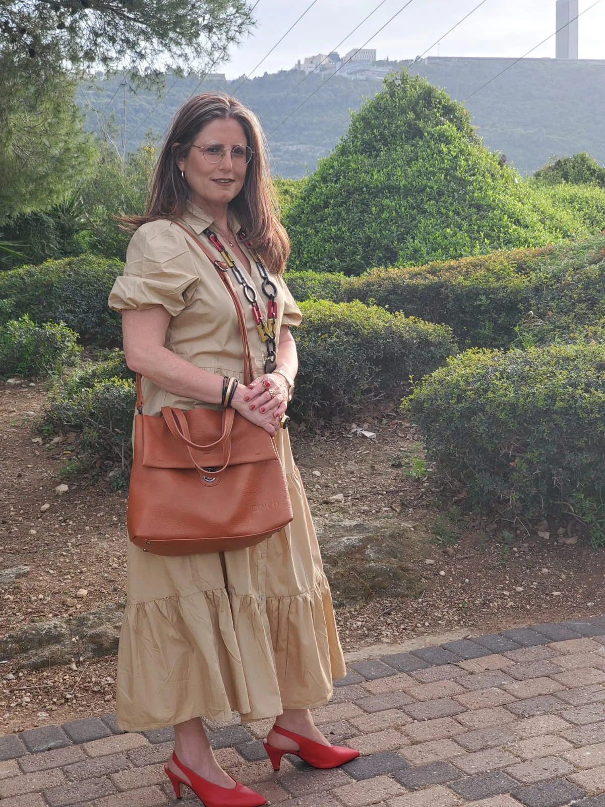 ובאופציה השניה הוספתי קצת צבע בעזרת השרשרת הדומיננטית והיפה של המעצבת המוכשרת טובה ורובל .
