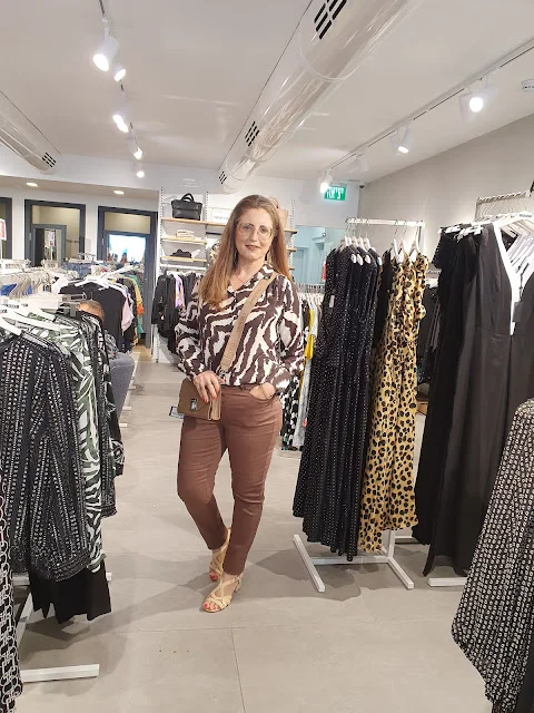 אמרתי שאני אוהבת חום נכון,מדדתי שמלה קלאסית מחמיאה ולוק שני מכנסיים מחטבים וחולצה יפיפייה בפרינט עם חום.
