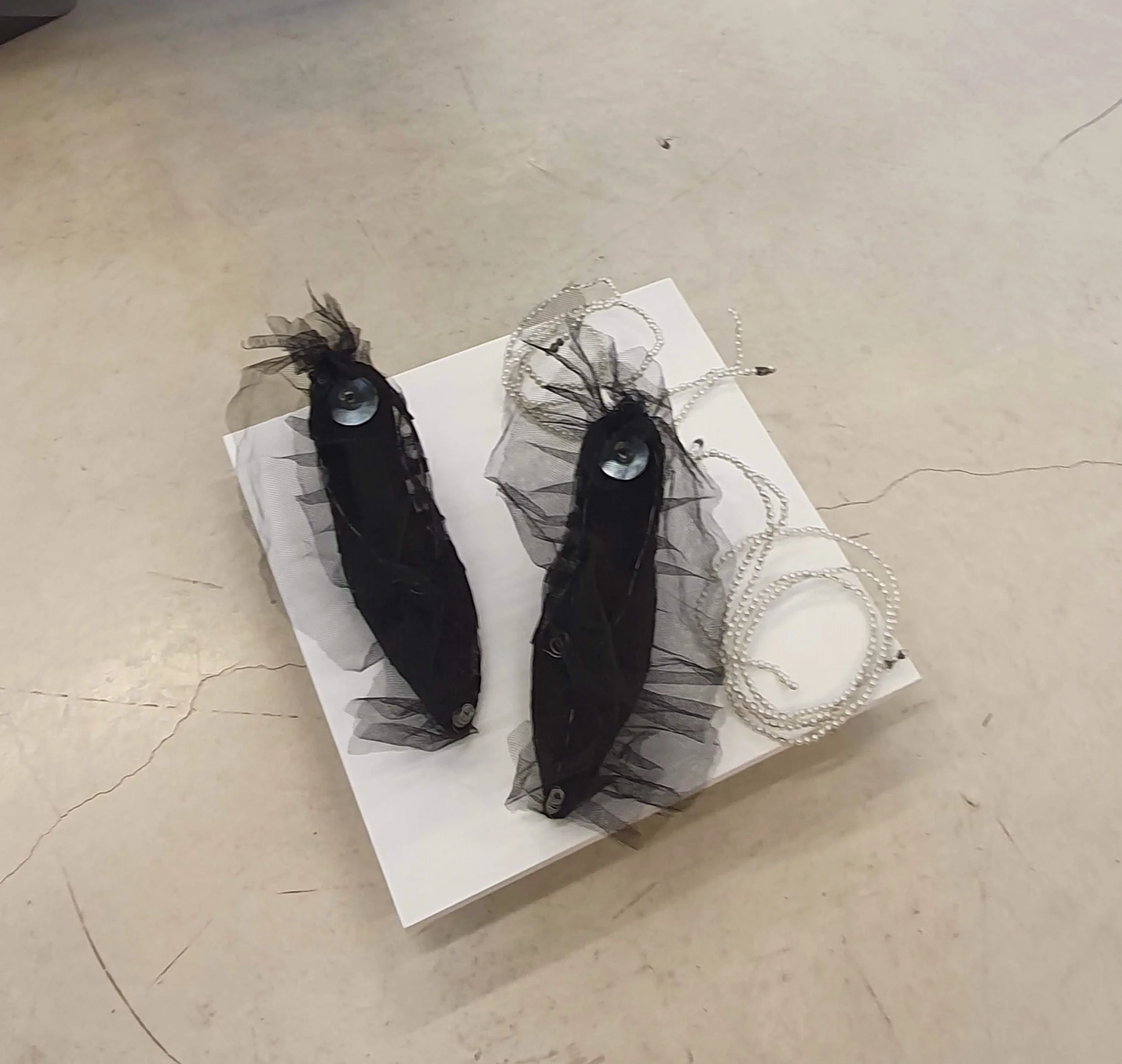 ספיר בלומברג -קול השבורות " ספיר בודקת את חווית הגוף הפרטי במרחב הציבורי. בין אם בהקשר להיעדר גבול ברור בין המרחב האינטימי (הקשור בגופנו) למרחב השייך לנחלת הכלל, ועל היות אישה נוכחת כל העת תחת מבט ותגובה במרחב ובשיח. מערכות הלבוש שהיא עיצבה נוצרו מחלקים שחוברו באמצעות רצועות, חבלים, עצמות, רשתות או בדים של ממש.
