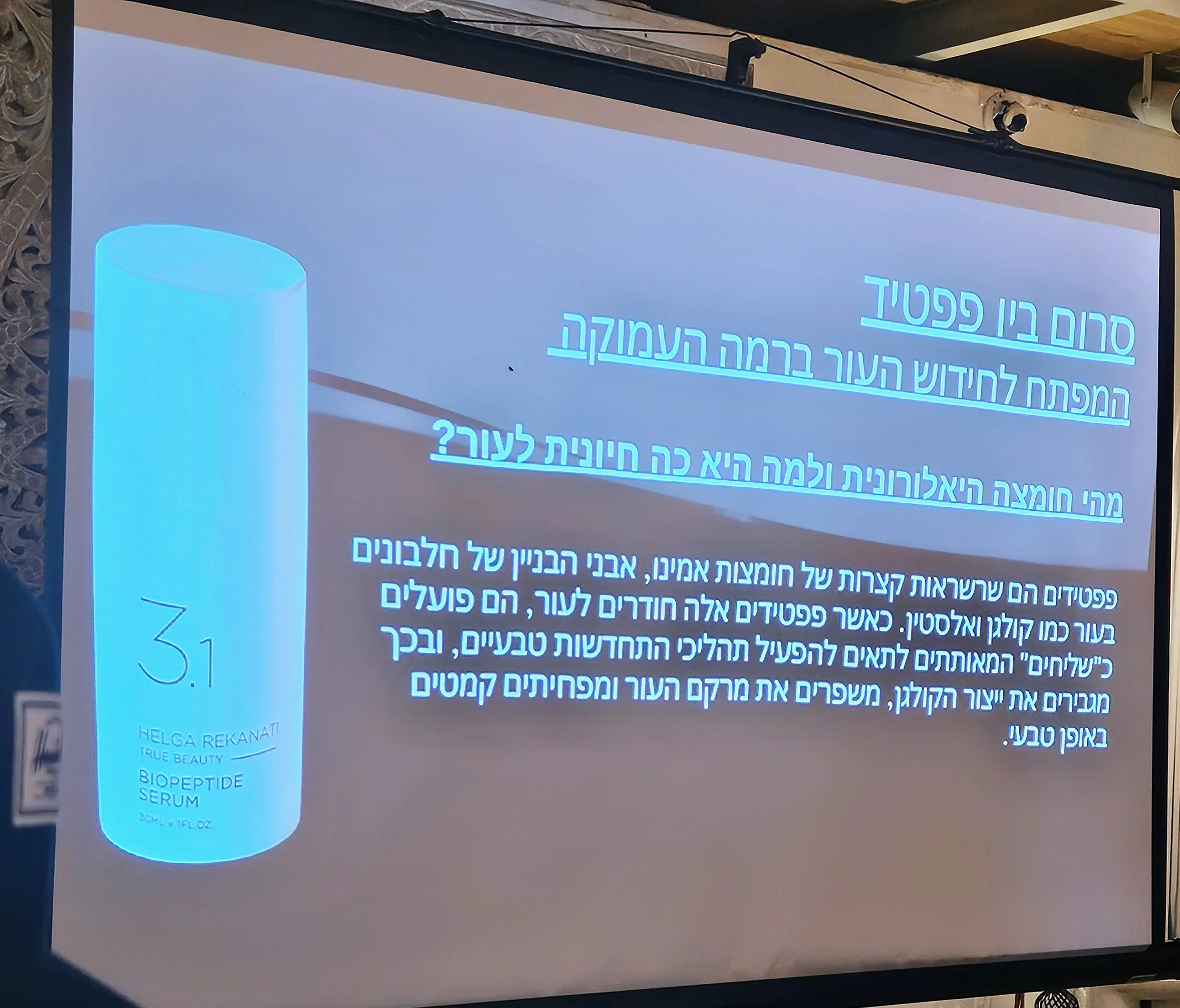 באירוע הלגה העבירה לנו בהרצאה את האני מאמין שלה :"אני לא מאמינה בהבטחות שווא או בפתרונות קסם. אני מאמינה בתוצאות אמיתיות שנתמכות במדע ובמחקר," אומרת הלגה רקנטי. "הסדרה החדשה מייצגת את המחויבות שלי לאמת – לא עוד פתרונות רגעיים, אלא טיפול עמוק המחקה תהליכים ביולוגיים טבעיים של העור ומעניק תוצאות משמעותיות הנראות לעין."