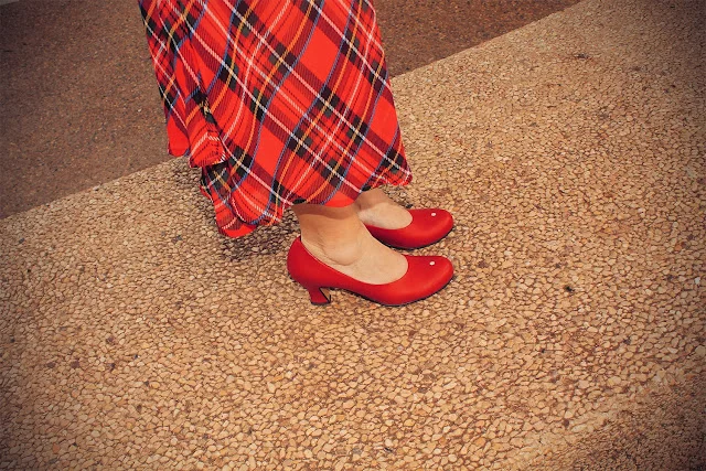 הנעליים – את נעל הסירה האדומה הזו קניתי בחנות החדשה שנפתחה בחיפה של מעצב הנעליים והתיקים הישראלי אדי כלאב– לאט לאט המעצבים מגיעים גם לחיפה. מאוד התחברתי לעקב הוינט'זי והנקודת השמנת שמעטרת את הנעל.
