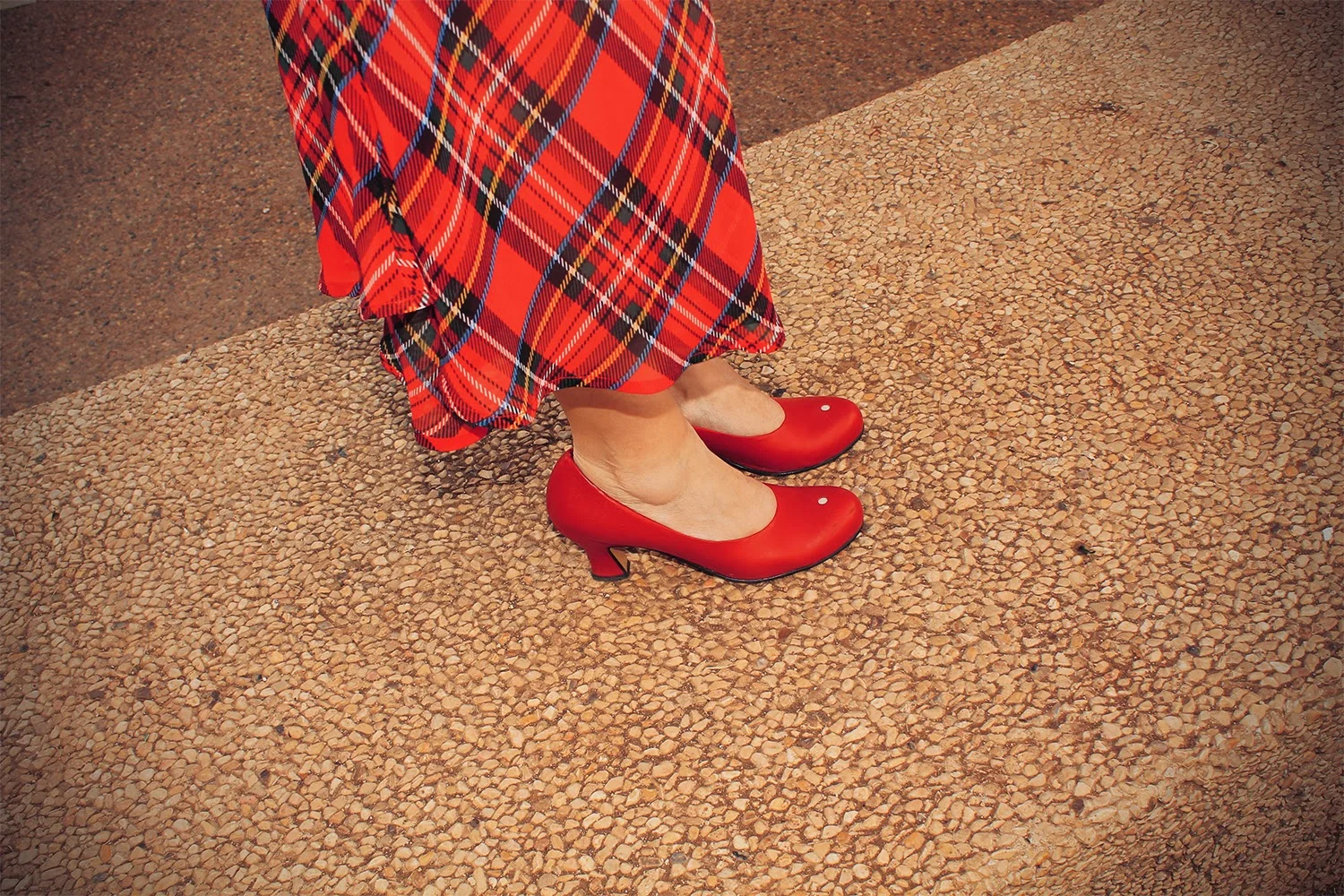 הנעליים – את נעל הסירה האדומה הזו קניתי בחנות החדשה שנפתחה בחיפה של מעצב הנעליים והתיקים הישראלי אדי כלאב– לאט לאט המעצבים מגיעים גם לחיפה. מאוד התחברתי לעקב הוינט'זי והנקודת השמנת שמעטרת את הנעל.