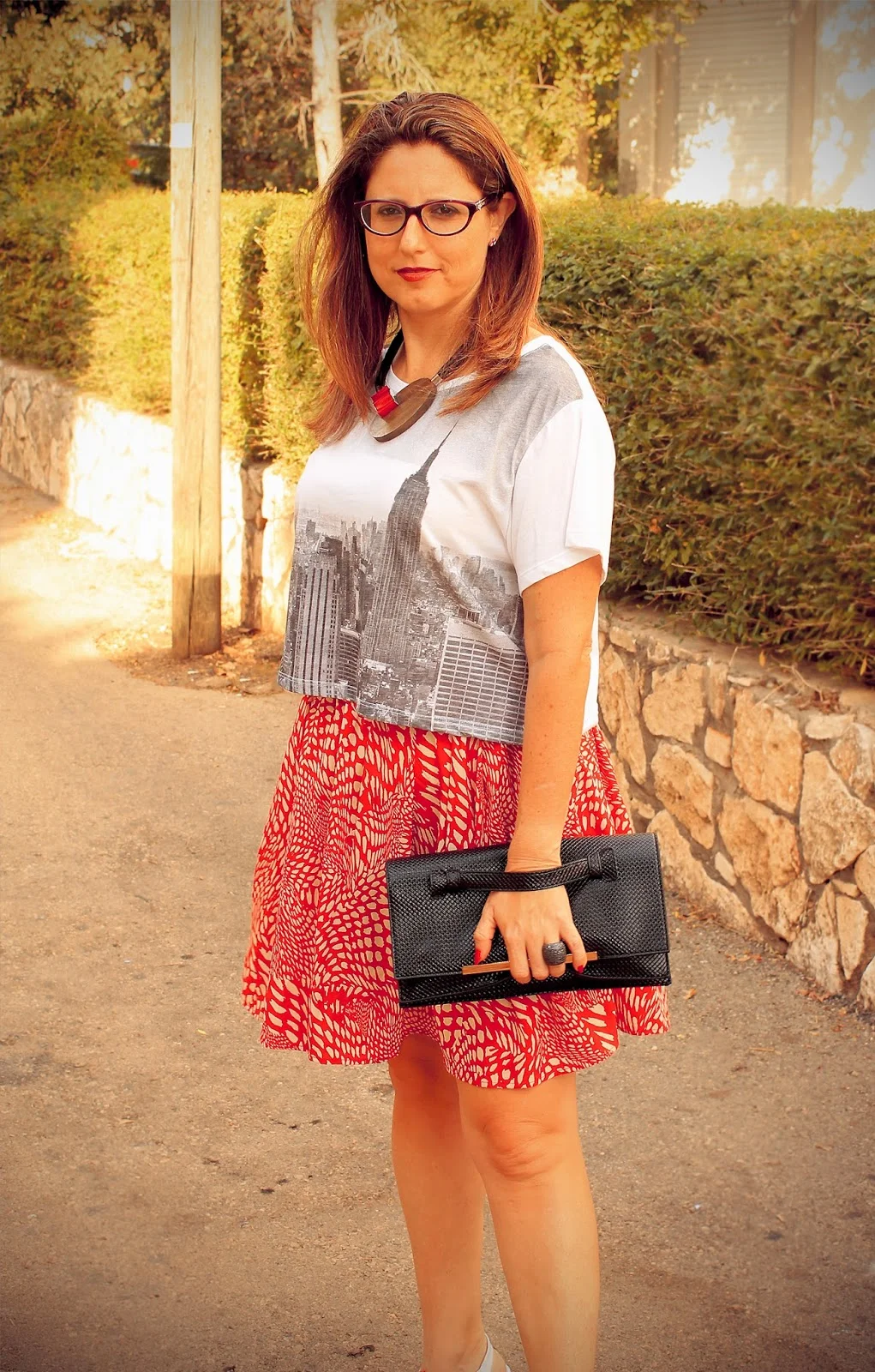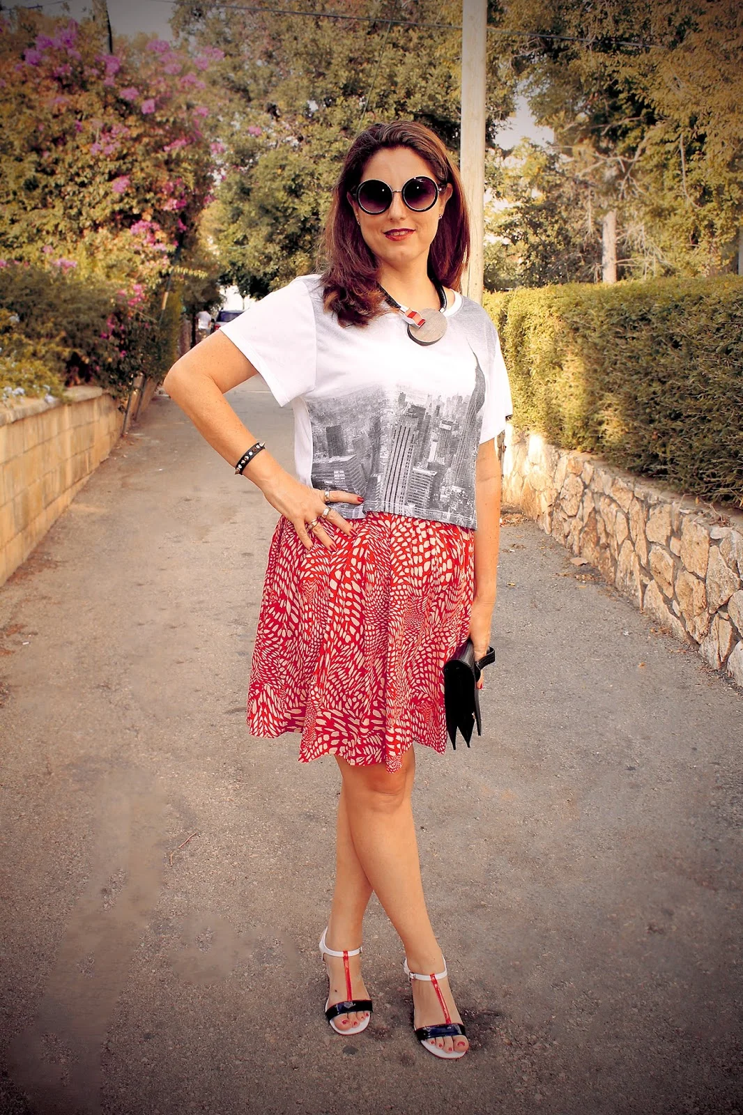 מאוד התלהבתי מהחצאית ,קיצית ,אוורירית, הדפס מענין והכי חשוב רציתי חצאית שמשולב בה צבע אדום.